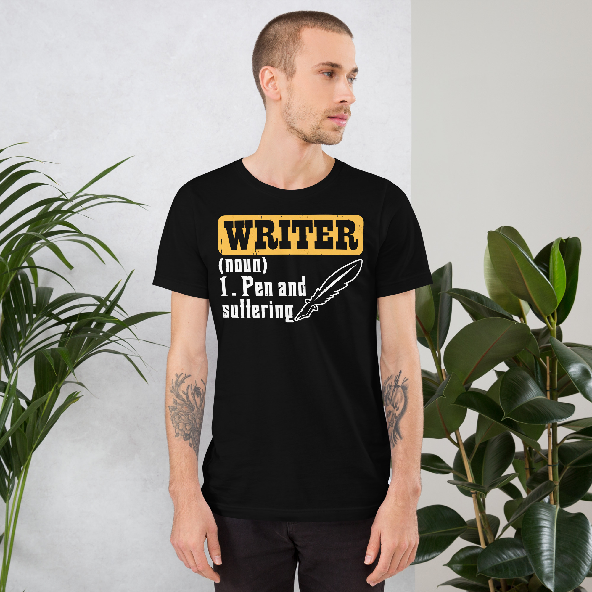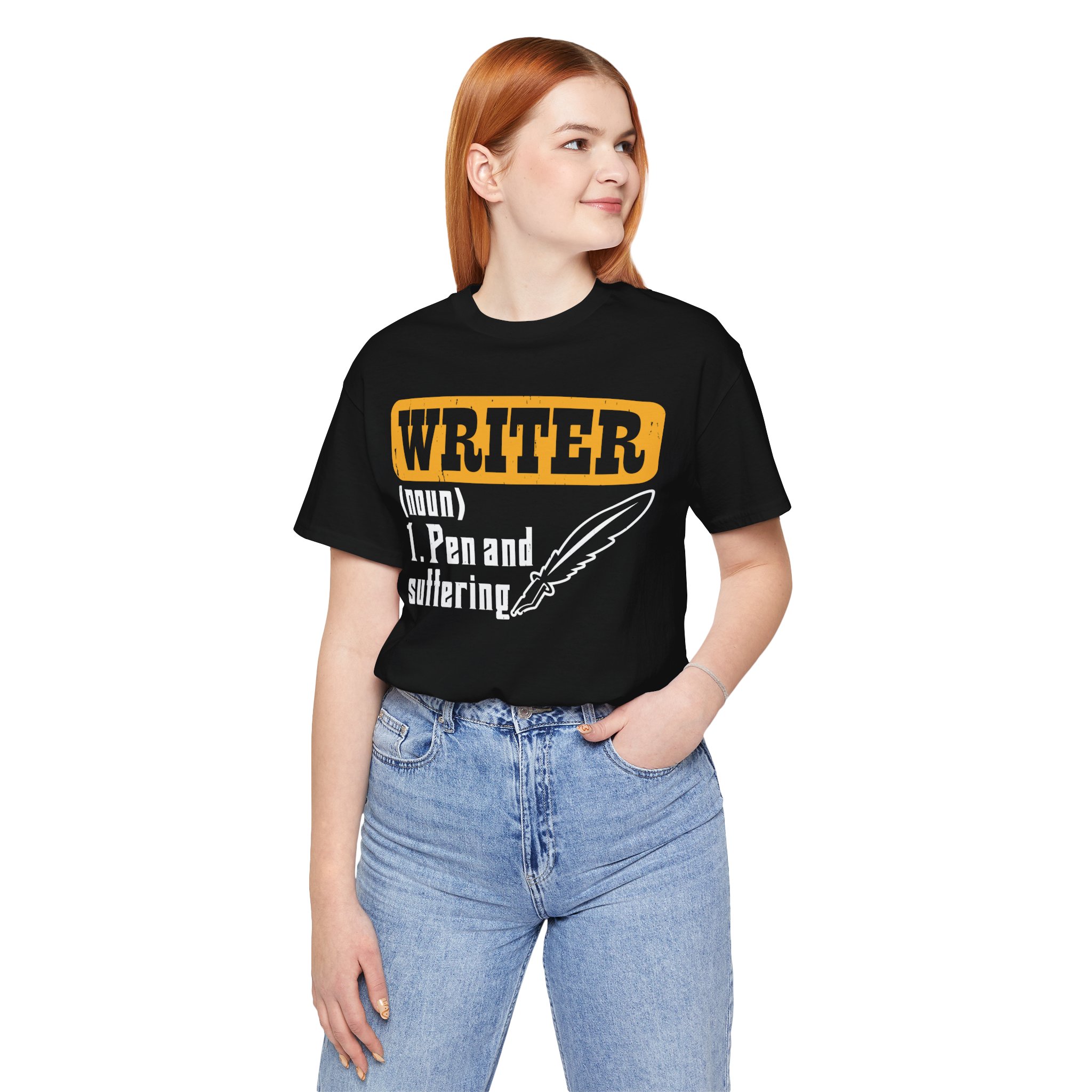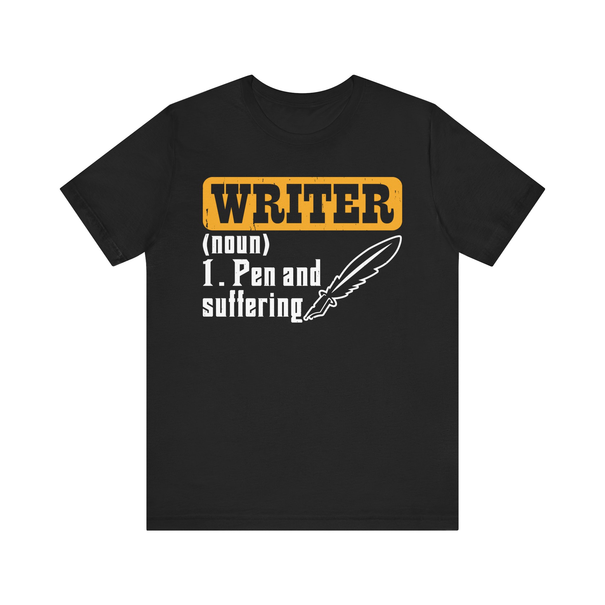 Writer = Pen and Suffering- Unisex t-shirt- Literary-Themed Clothing for Authors-Funny Writer Quotes on T-Shirts- Unisex Jersey Short Sleeve Tee